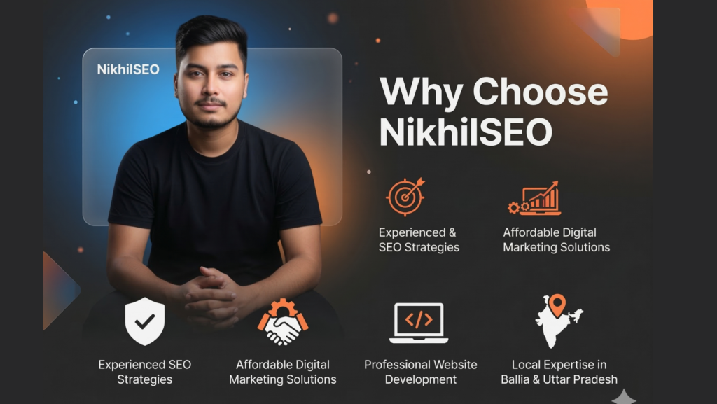 At NikhilSEO, we provide result-driven digital marketing services designed to help businesses, schools, and organizations grow online. From SEO optimization to website development and social media marketing, our services focus on increasing visibility, generating leads, and building a strong digital presence across Uttar Pradesh.